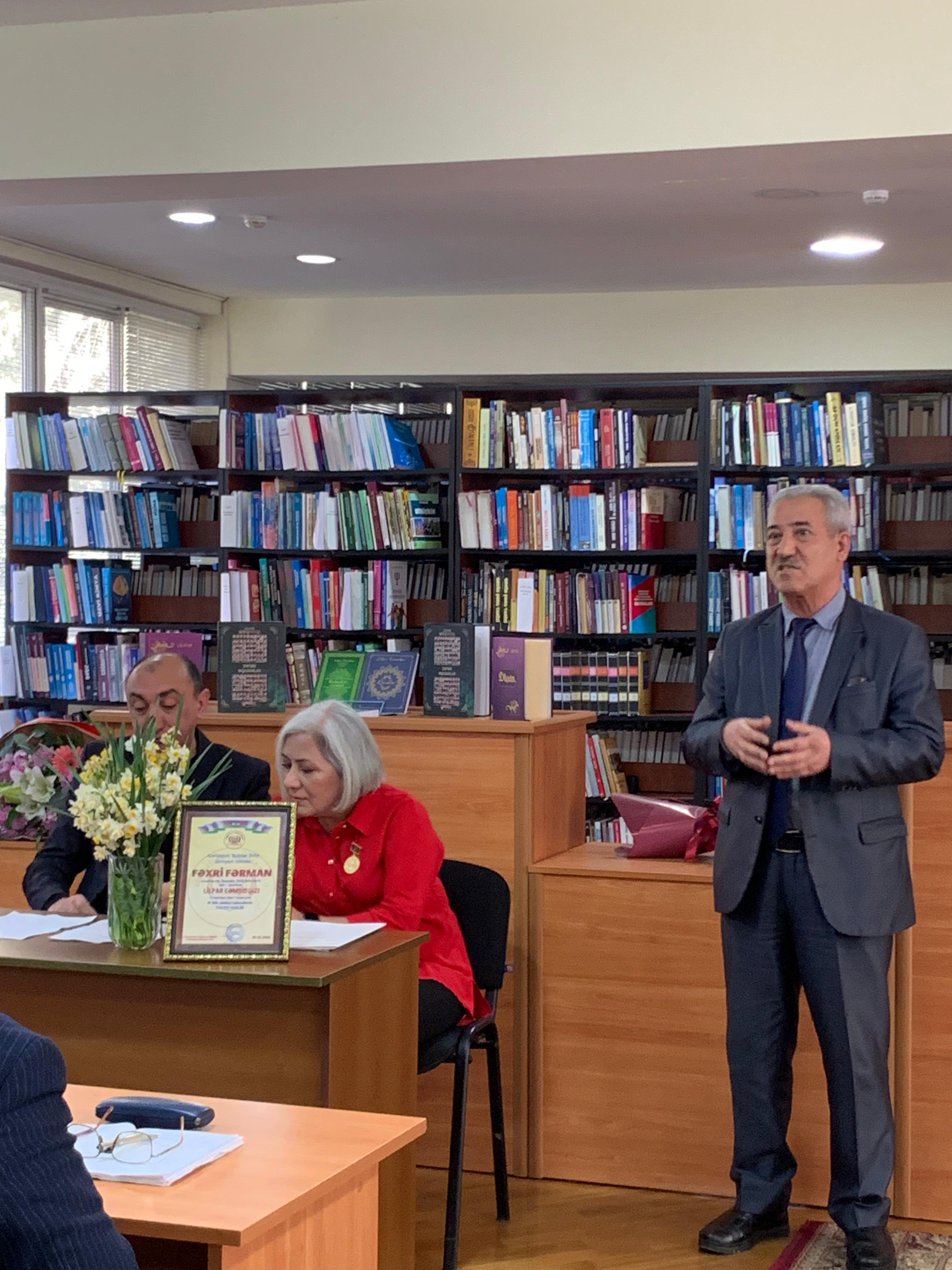 Sonda müəllif əruz vəznində qələmə aldığı qəzəllərini öz ifasında səsləndirib, tədbirin təşkilinə görə kitabxana əməkdaşlarına minnətdarlığını bildirib.