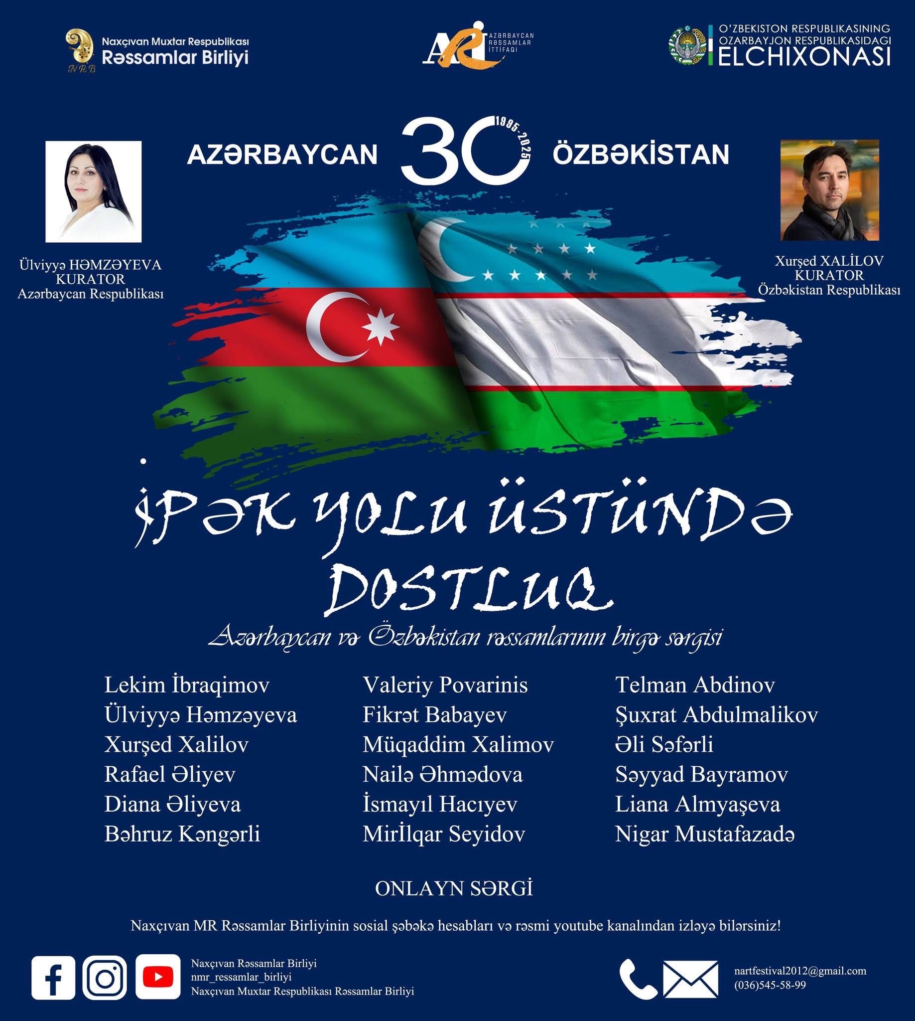 Naxçıvan Muxtar Respublikası Rəssamlar Birliyi, Azərbaycan Rəssamlar İttifaqı və Özbəkistan Respublikasının Azərbaycan Respublikasındakı Səfirliyinin birgə əməkdaşlığı çərçivəsində “İpək yolu üstündə dostluq” adlı beynəlxalq onlayn sərgi həyata keçirilib.
