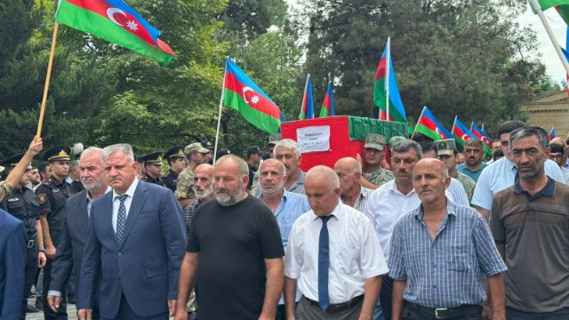 Yenises.az xəbər verir ki, hərbçinin tabutunun büküldüyü Azərbaycan bayrağı onun atasına təhvil verilib.