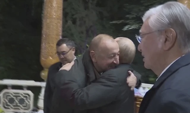 Azərbaycan və Rusiya prezidentləri İlham Əliyev və Vladimir Putin Düşənbədə keçirilən danışıqlardan sonra MDB dövlət başçılarının qeyri-rəsmi görüşündə qucaqlaşaraq görüşüblər.